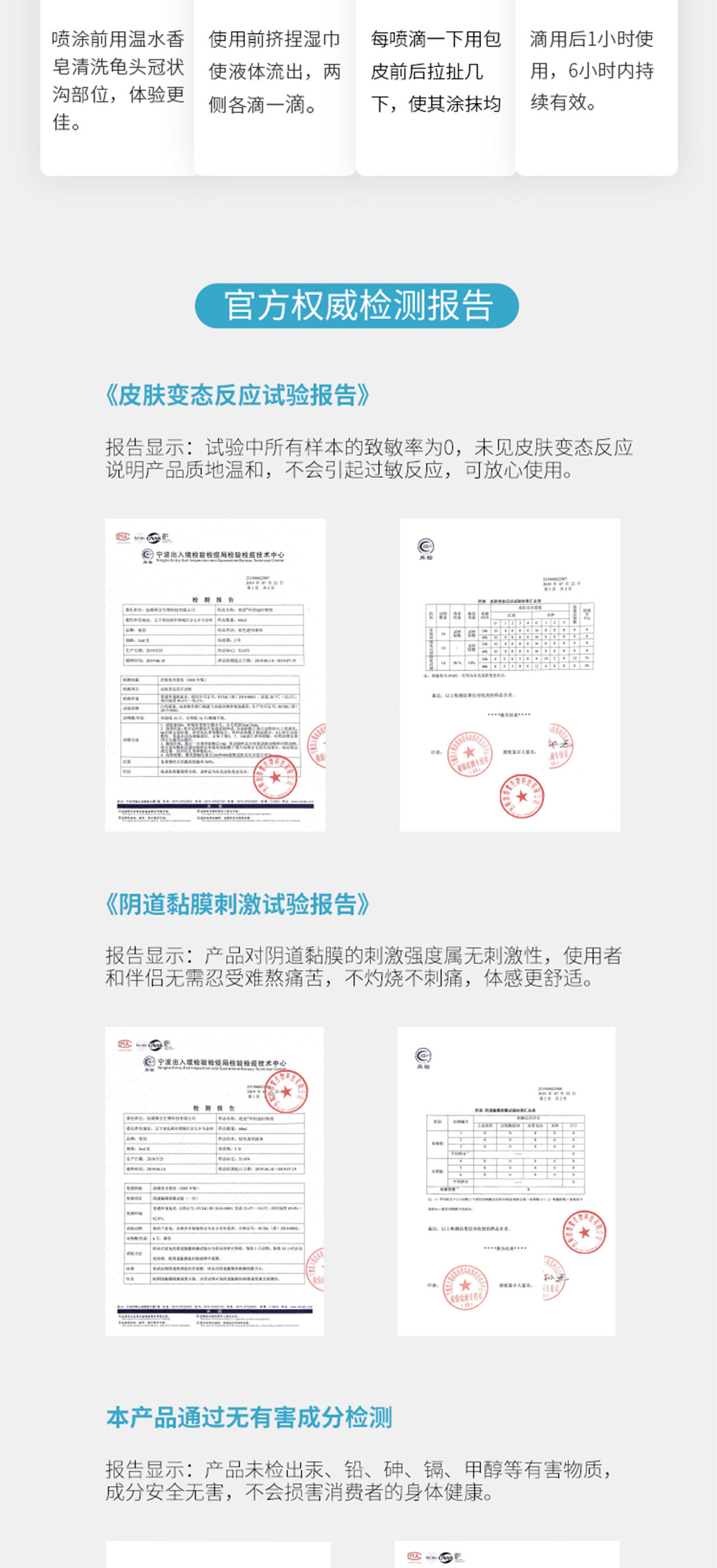 喷涂前用温水香皂清洗龟头冠状沟部位体验更佳,使用前挤捏湿巾使液体流出,两侧各滴一滴,每喷滴一下用包皮前后拉扯几下,使其涂抹均匀。
